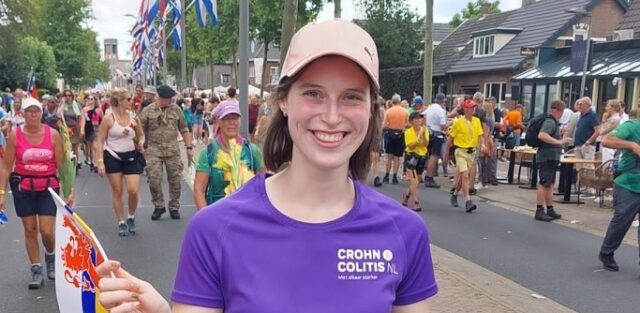 Lotte Dirchs (23) heeft colitis ulcerosa. Zij liep dit jaar voor het eerst mee met de Vierdaagse en haalde daarmee € 721 op voor Crohn & Colitis NL.